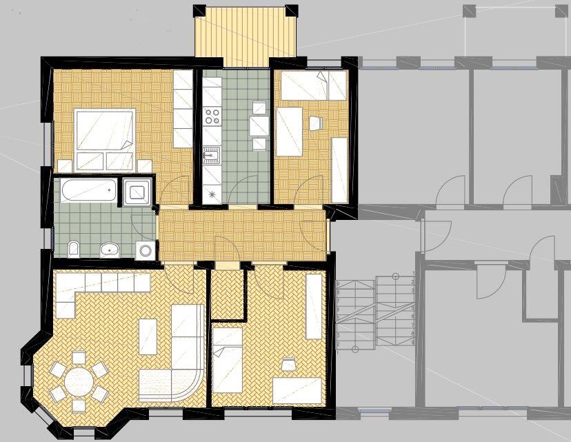 - Alles Tageslichtbäder, die großen Wohnungen verfügen über Wanne und Dusche, im DG entweder Wanne oder Dusche.